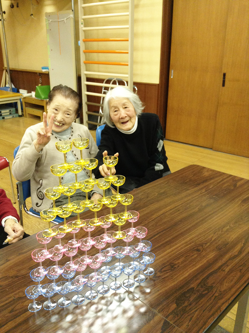 脳トレ・感覚のバランスのトレーニングとして、グラスつみ。倒さずにできました。とっても上手です!