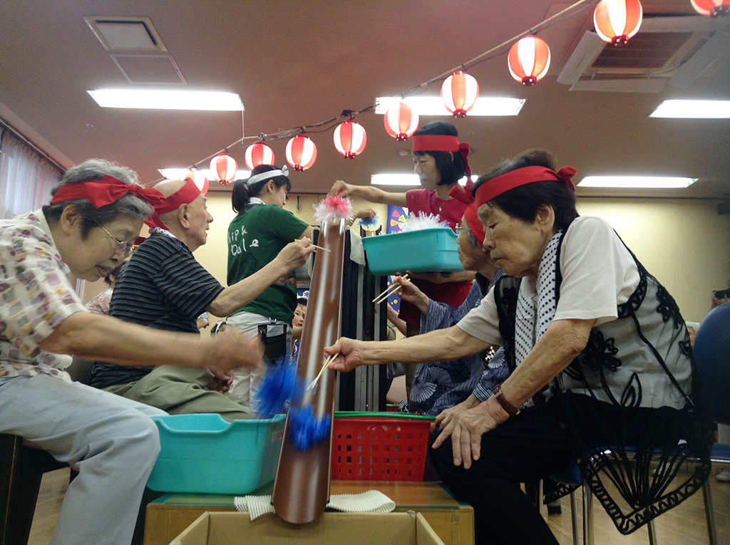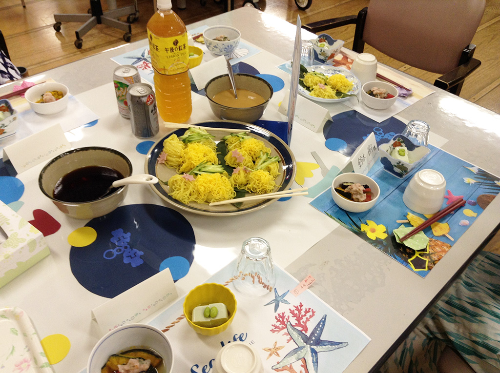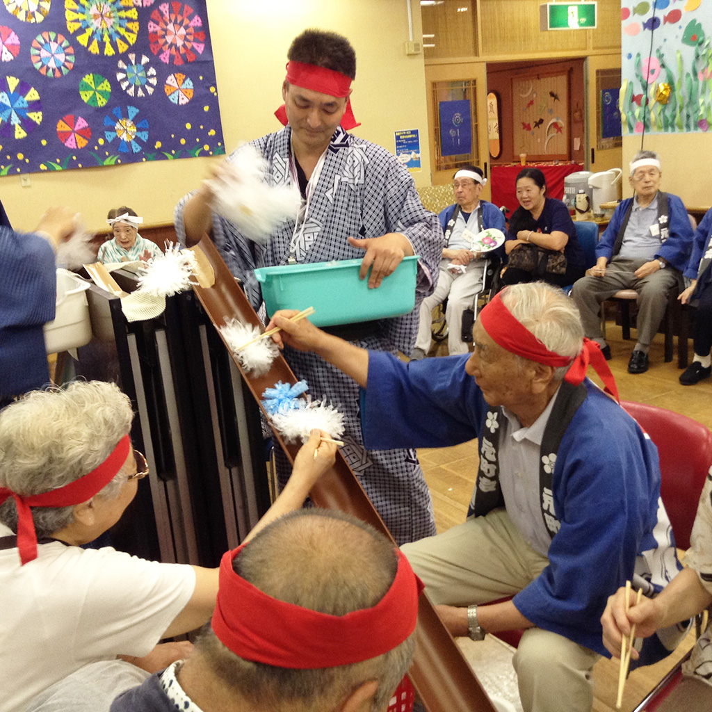 本日も流しそうめん(風)ゲームは大盛況!皆さん、必死に取ってます!