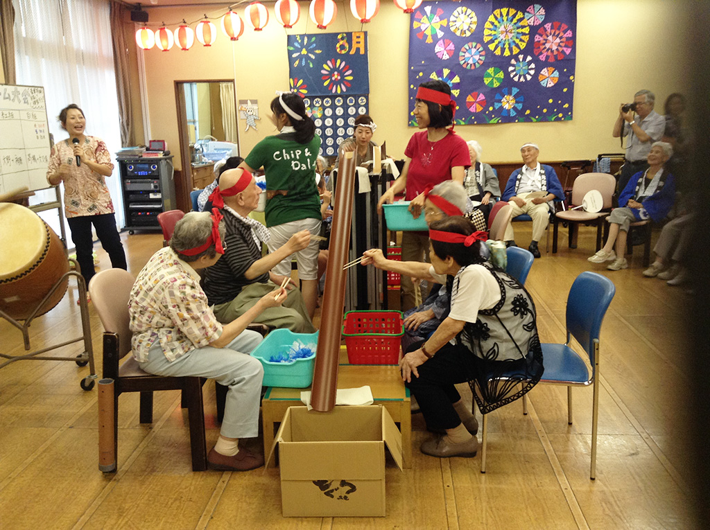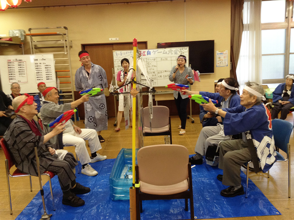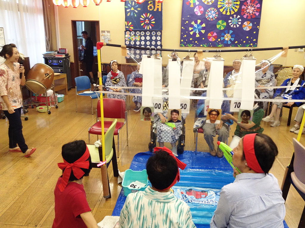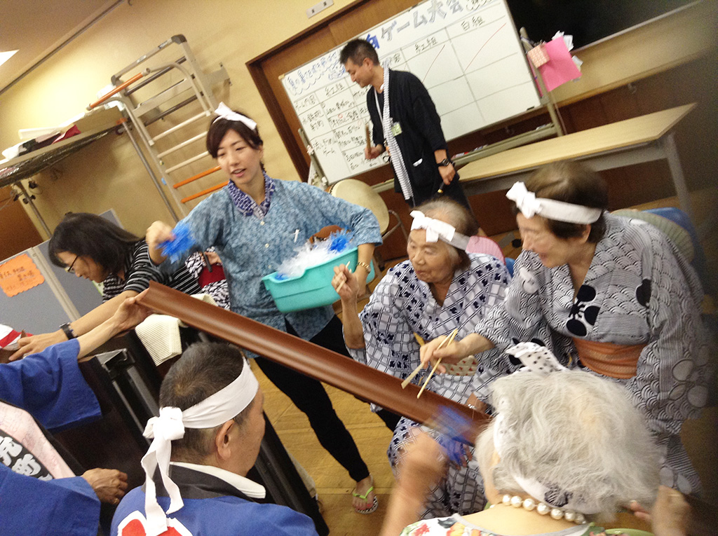 午後はゲーム大会!流しそうめん(風)ゲームで大盛り上がりでした!!