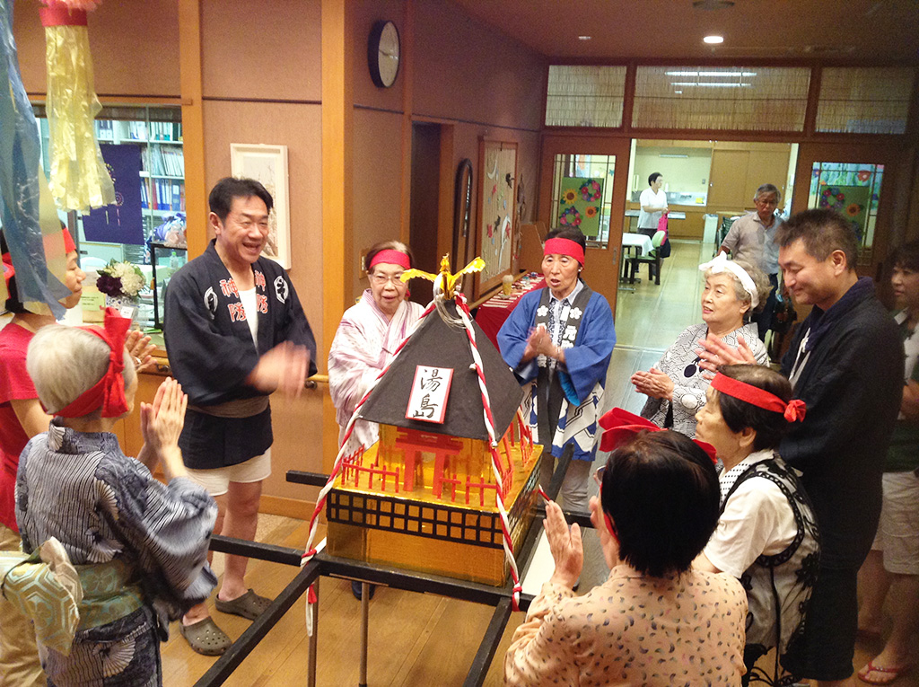センター長と記念撮影!お神輿の担ぎ手のご利用者様、ありがとうございました☆