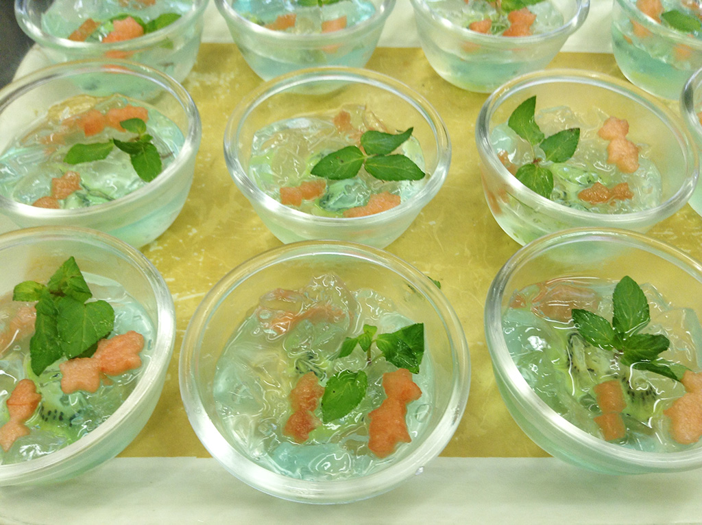 金魚鉢風のゼリーです!涼しげで金魚型のスイカも可愛い?インスタ映え~(^^♪