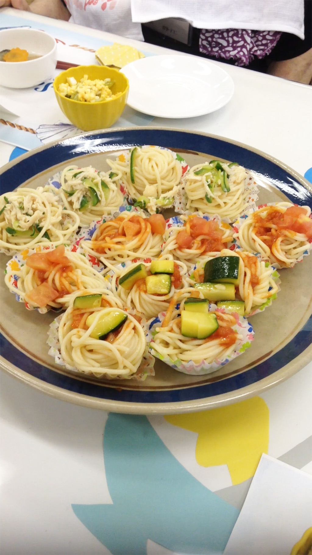 冷やし中華を一口盛りに!見た目も涼しげな昼食メニューです☆
