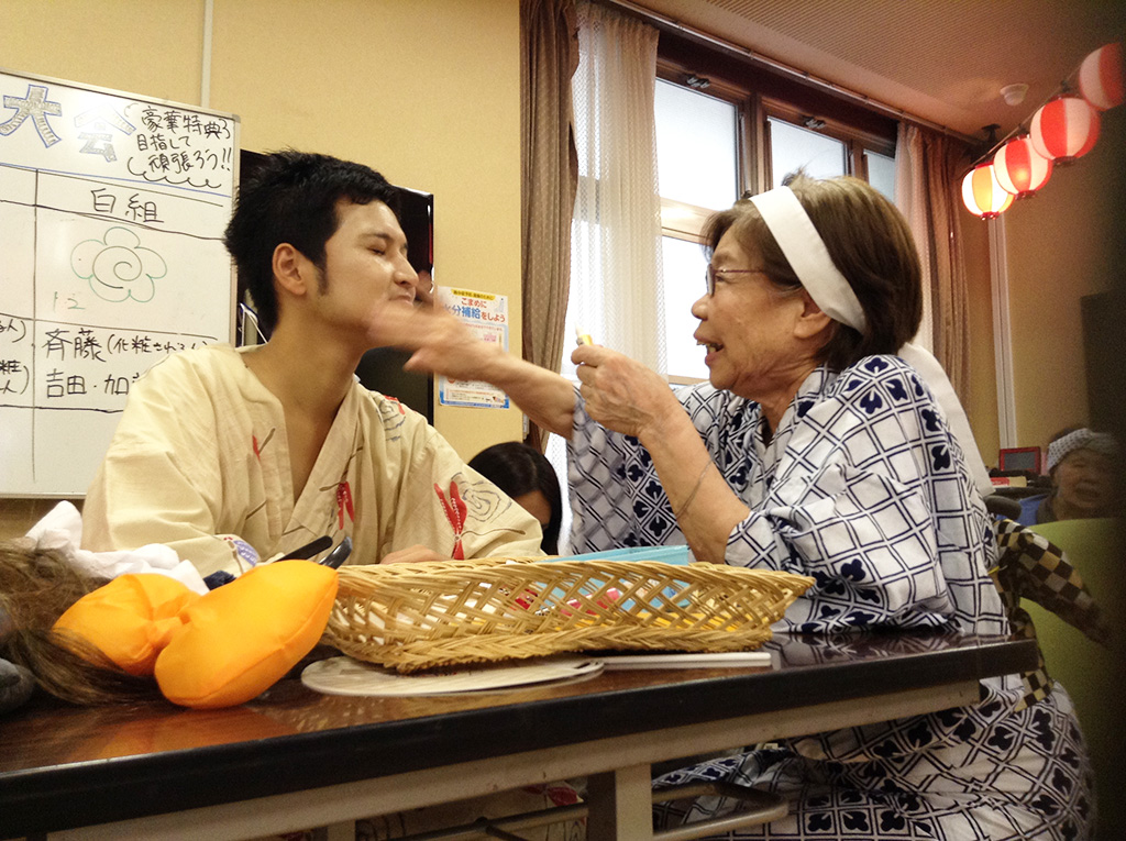 男性職員へお化粧対決!利用者様にお化粧してもらいました(^^)/