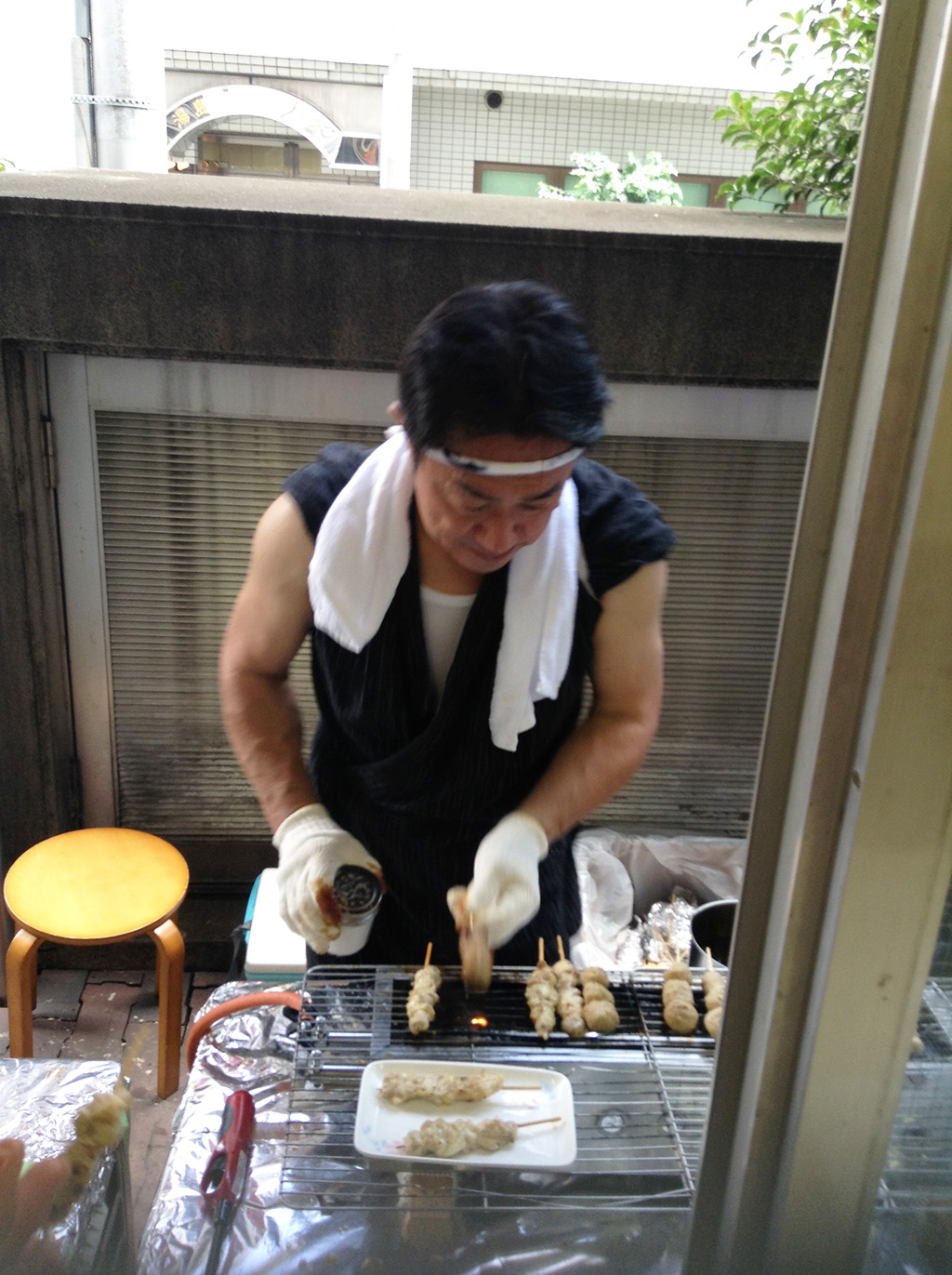 センター長は今年も暑さに負けず、焼き鳥焼いてます!!