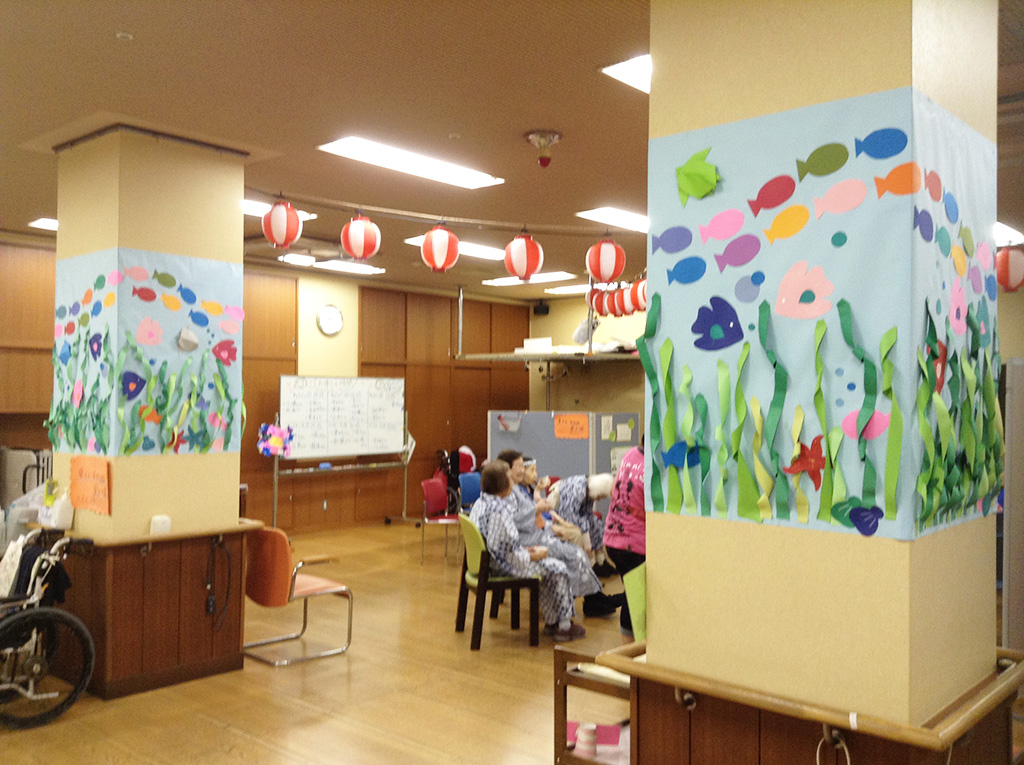 涼しげなお魚たちと可愛い金魚の装飾も!職員渾身の作品たち(^^♪