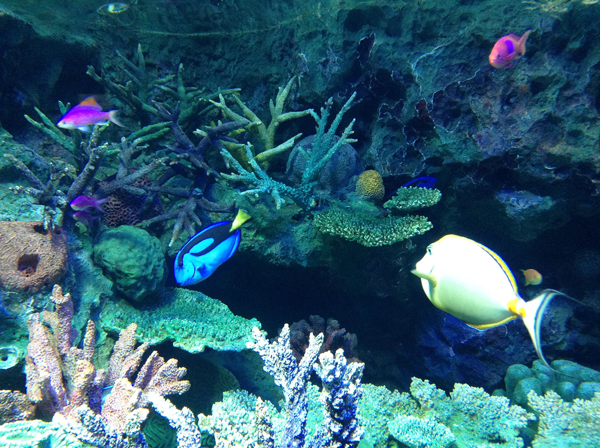 水槽内にお姉さんが泳いでいるところにも遭遇!!