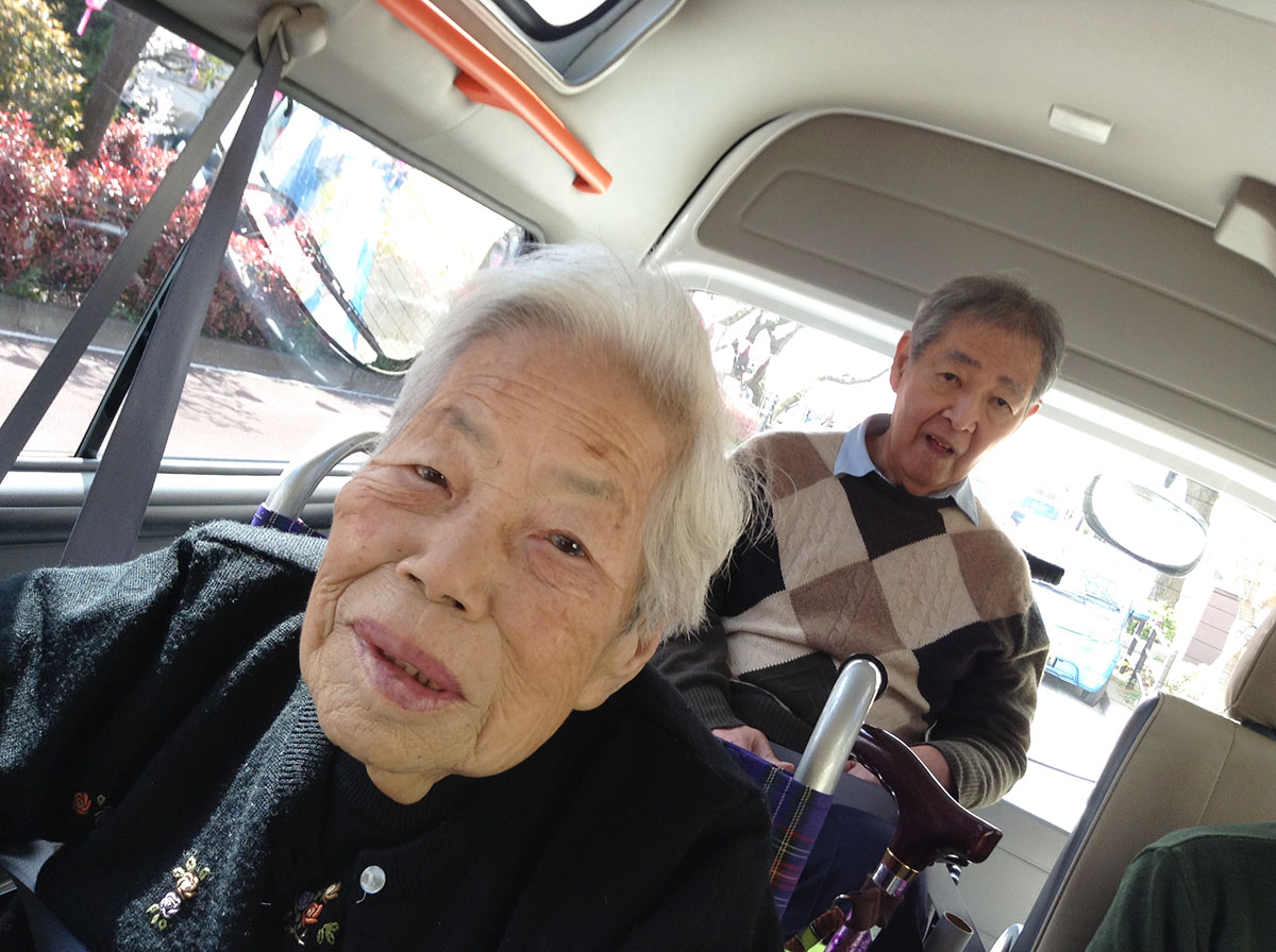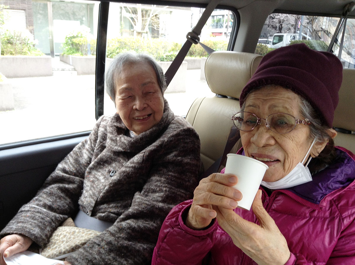 途中、桜を見ながら休憩で、大好評の甘酒も飲みました♪