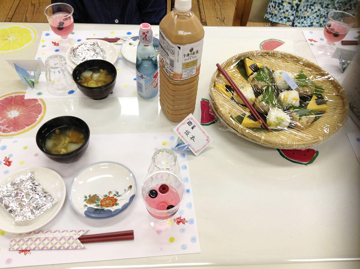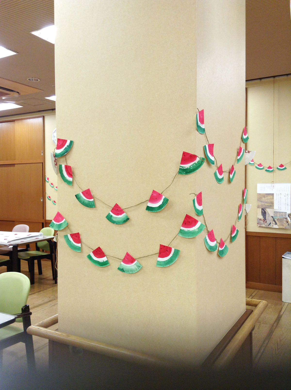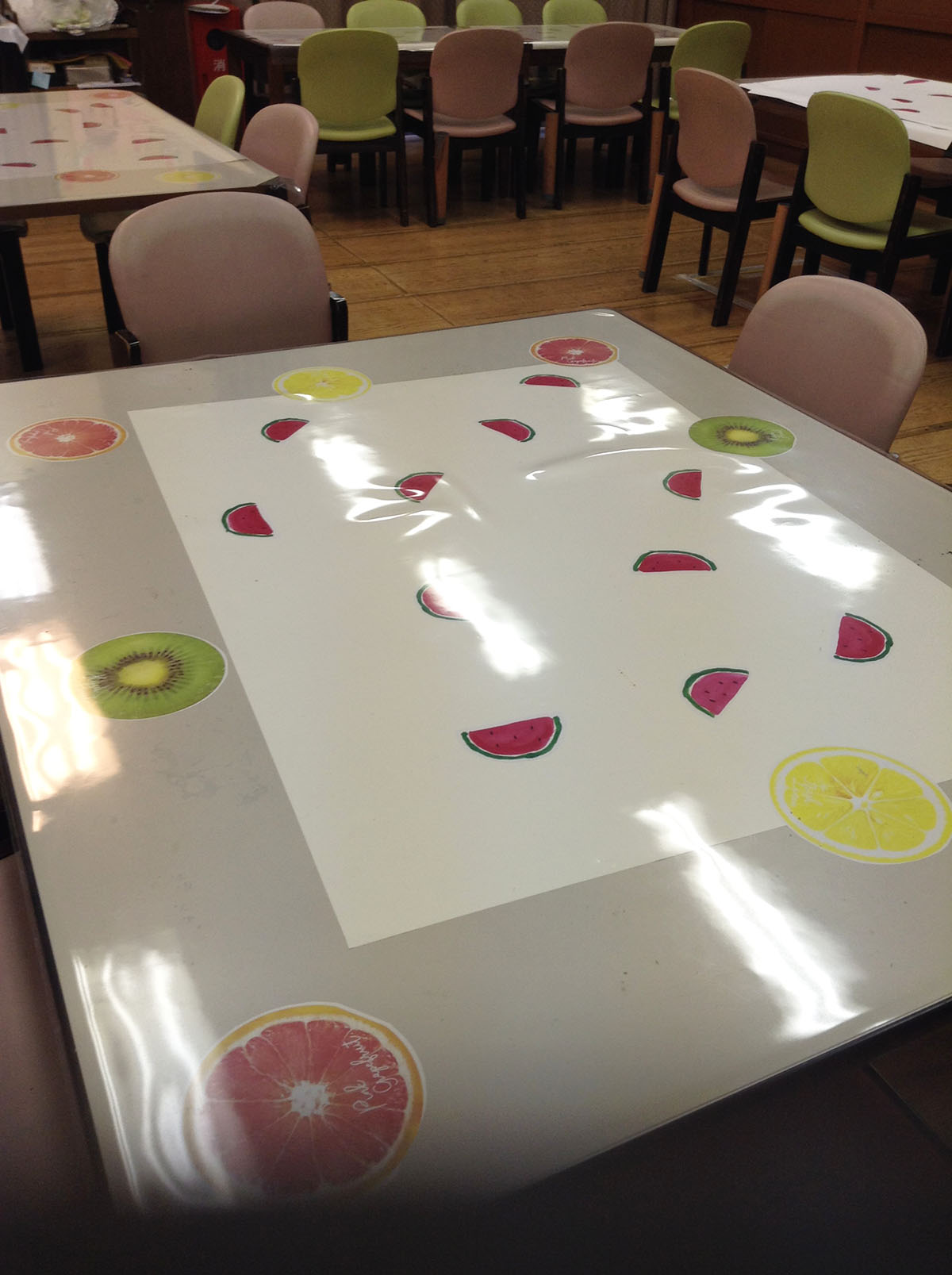 食堂は手書きの夏ものイラストで飾られたテーブルに☆