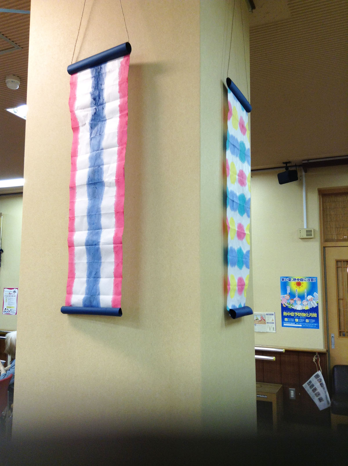 中に入ると…添乗にはクラフトテープで作った金魚のつるし飾りが!