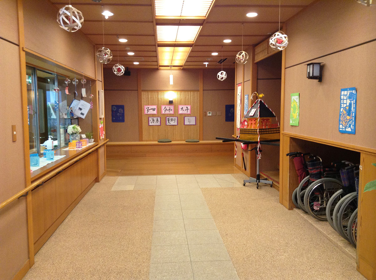 玄関は手作り氷の涼し気な飾りです!