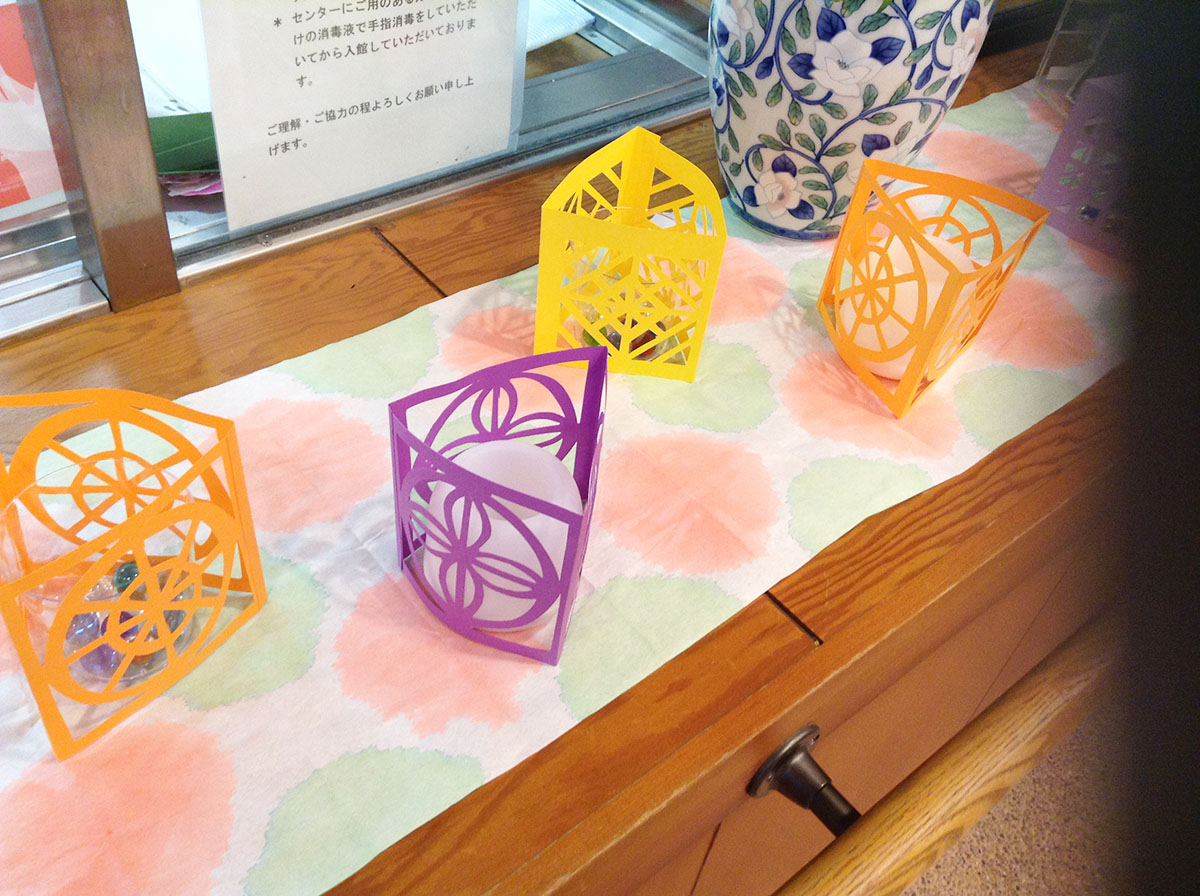 玄関内は切り絵と染め紙の飾りで涼やかに☆