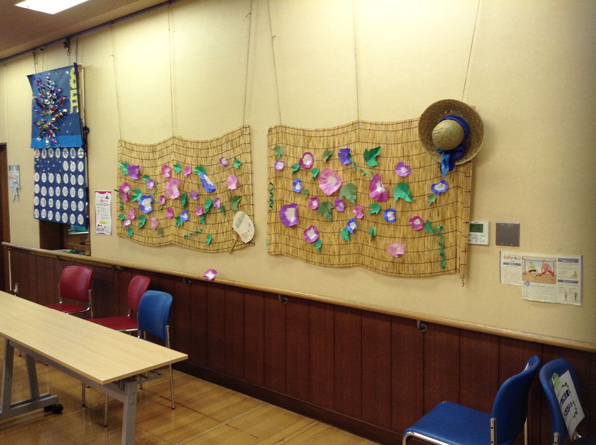 フロア内はすだれと朝顔の飾りです(^^♪