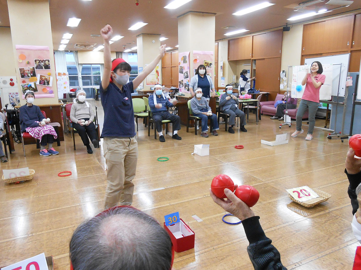 紅白に分かれての玉入れ大会!