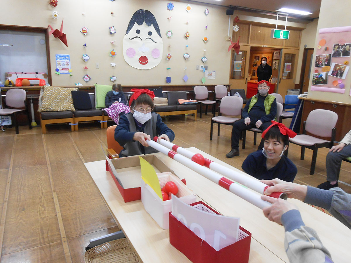 二人一組で頑張る玉運びゲームは息ピッタリ!高得点の連続でしたよー(^_-)-☆