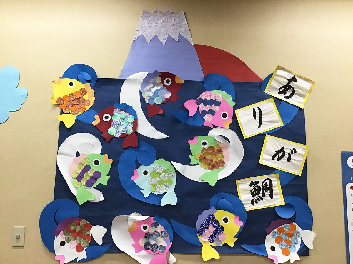 フロアの壁画作品です♪富士山と鯛で『ありが鯛』!!おめだたい、良いことが起こりそうです☆