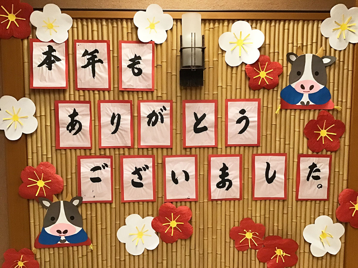 正面玄関は皆様への感謝の気持ちを今年の干支と一緒に飾りました♪