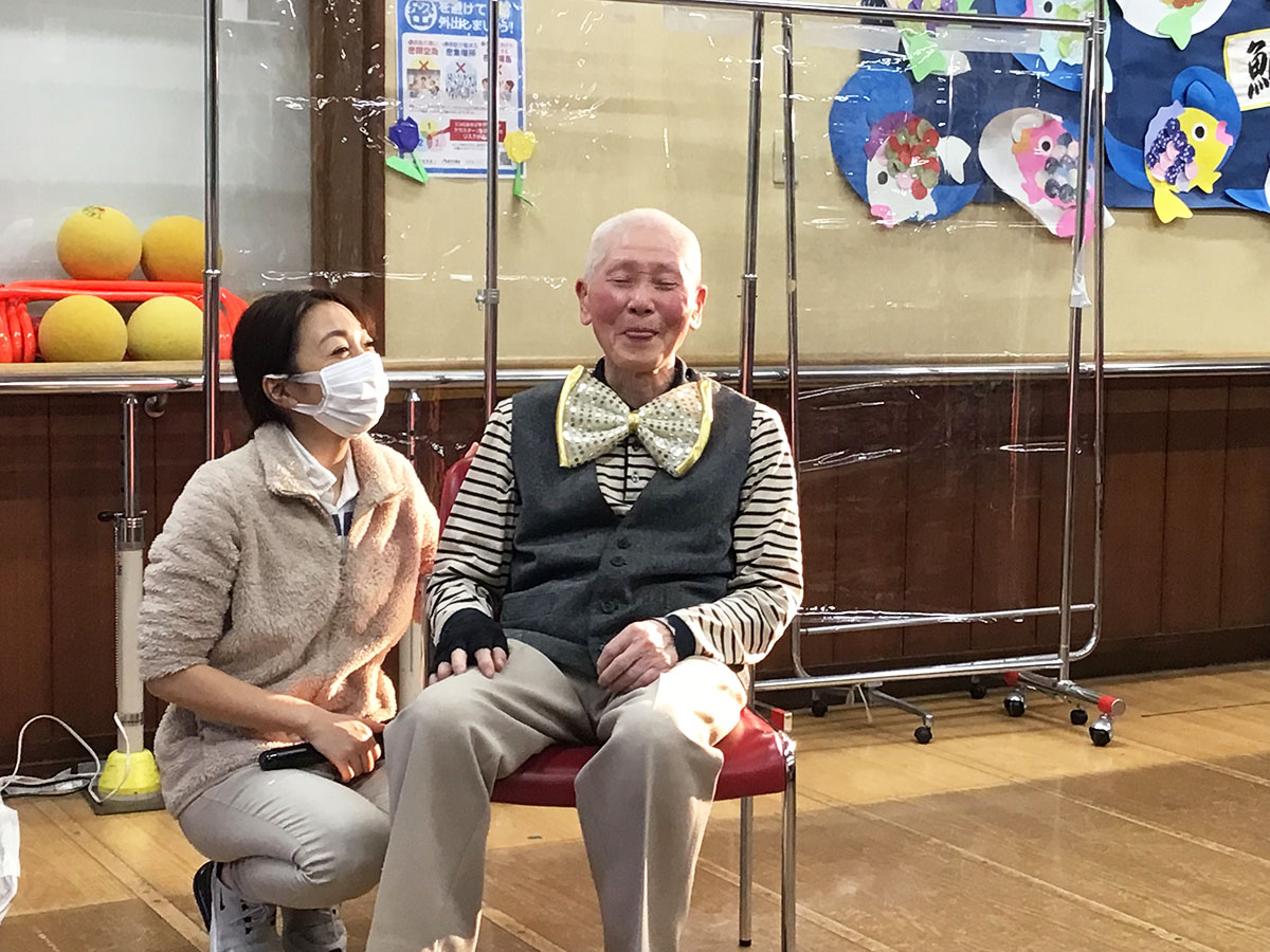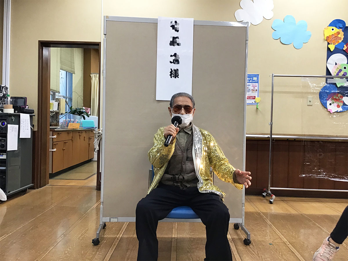 センター長の今年の出し物は『マツケンサンバ』でした☆終わった後は皆様にご挨拶です☆