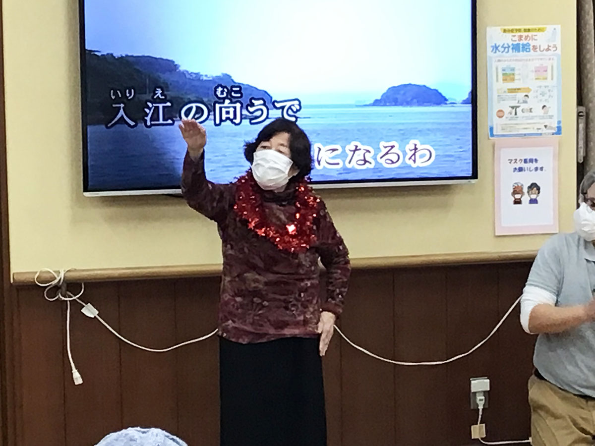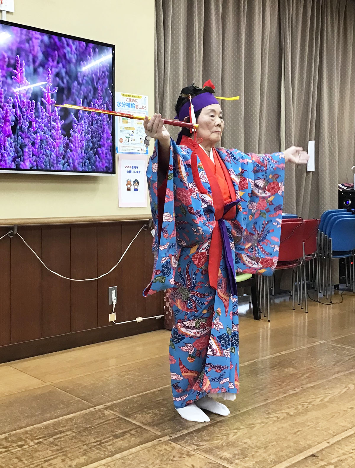 センターに通所されたときは車椅子でしたが、お1人で歩けるようになったと皆さまに『感謝』の気持ちを伝えたいとお祝いの舞を披露してくださいました☆衣装も素敵です☆
