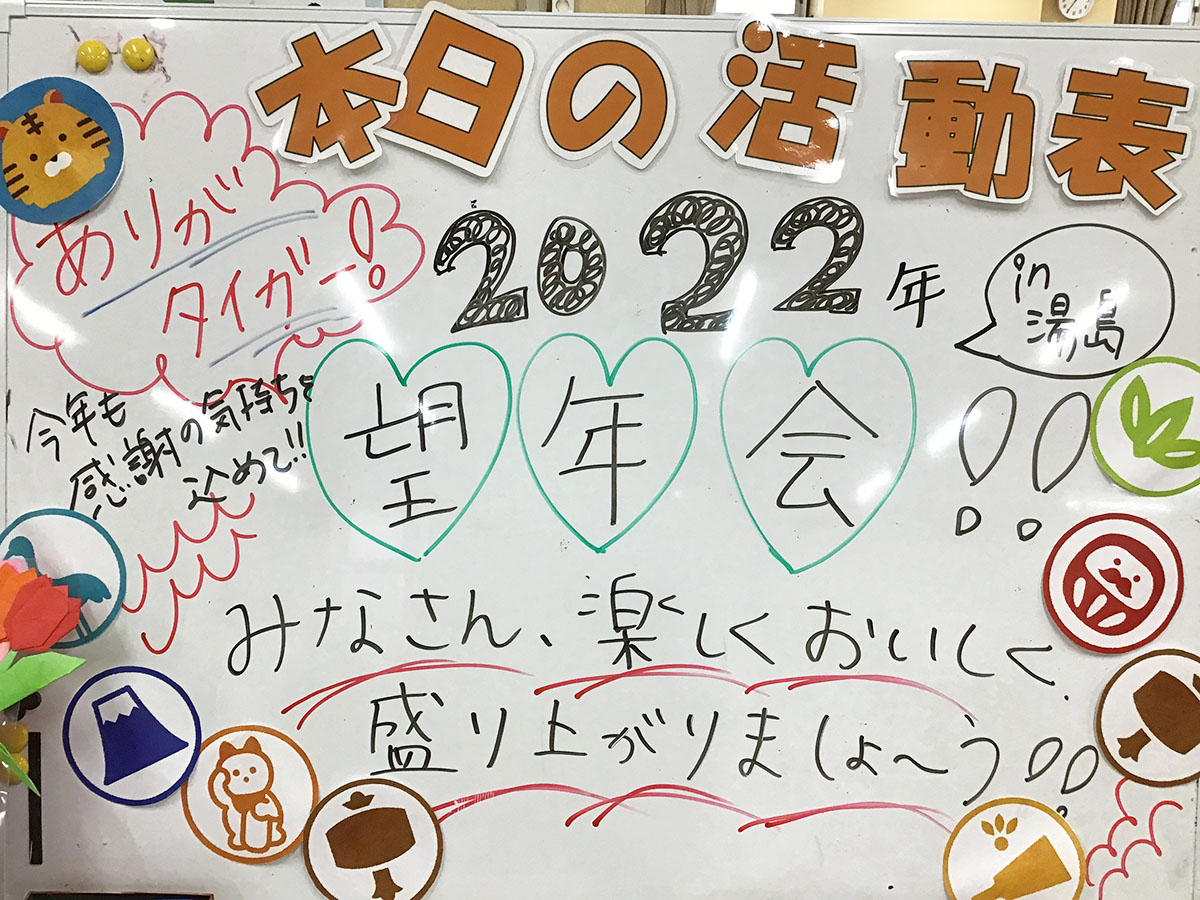 今年も『感謝』の気持ちを込めまして12月10日(土)、12日(月)、13日(火)に『望年会』を開催いたしました♪文京湯島高齢者在宅サービスセンターでは、『忘年会』という字ではなく、『望年会』という字を使わせて頂いています。