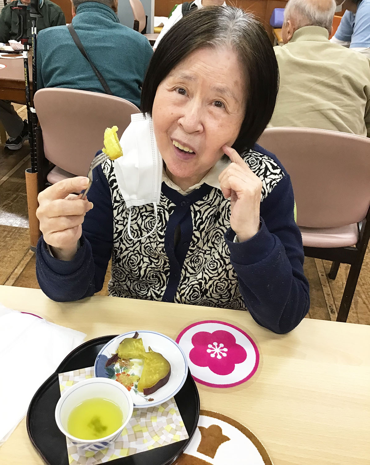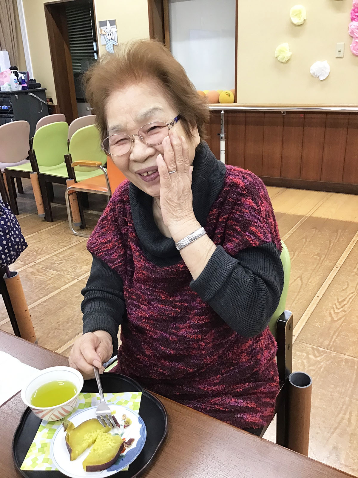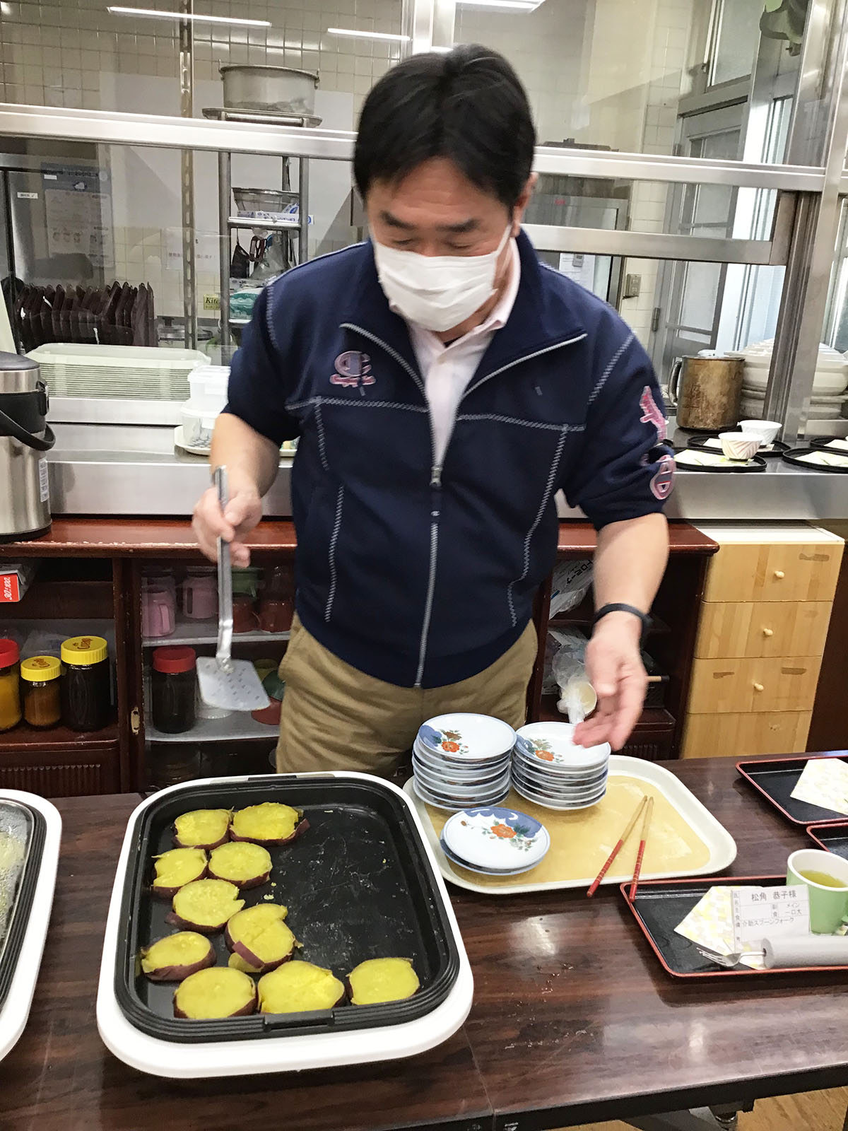 今年はセンター長がホットプレートで焼いた、焼き芋・焼きまんじゅう・おやきを召し上がって頂きました(^^)/