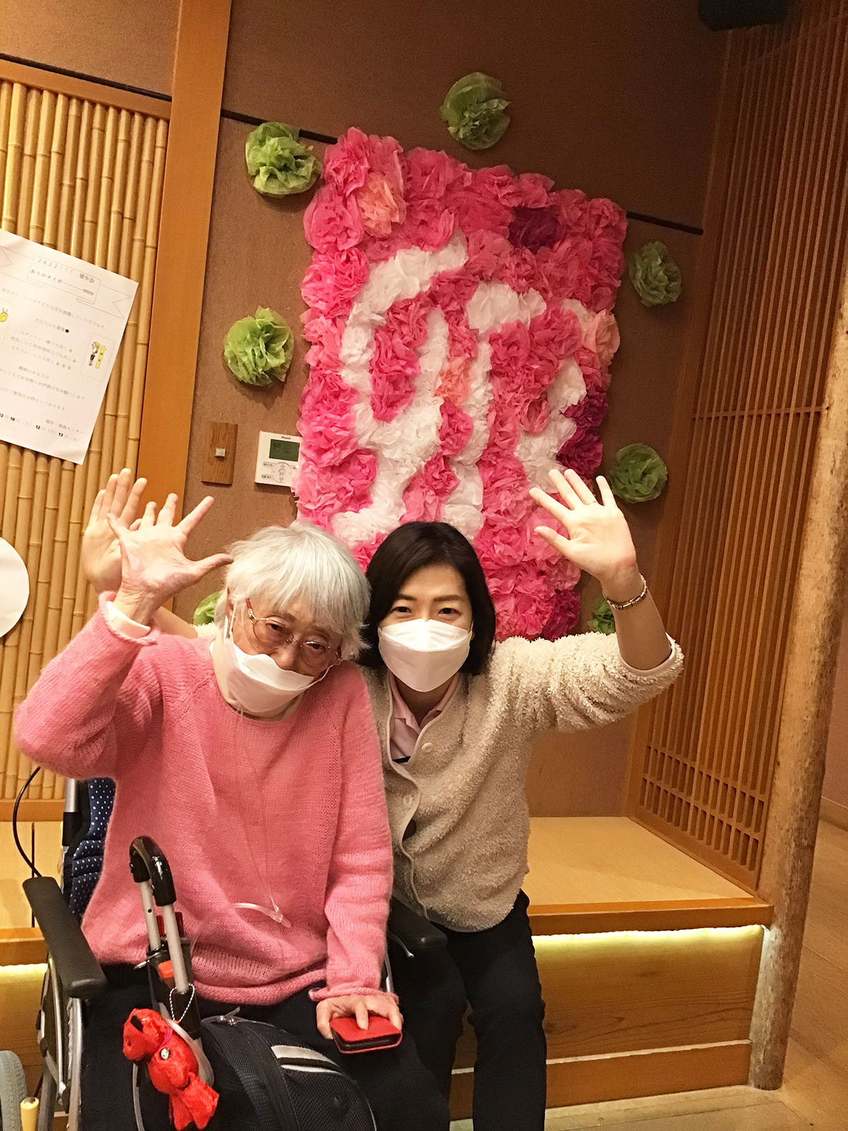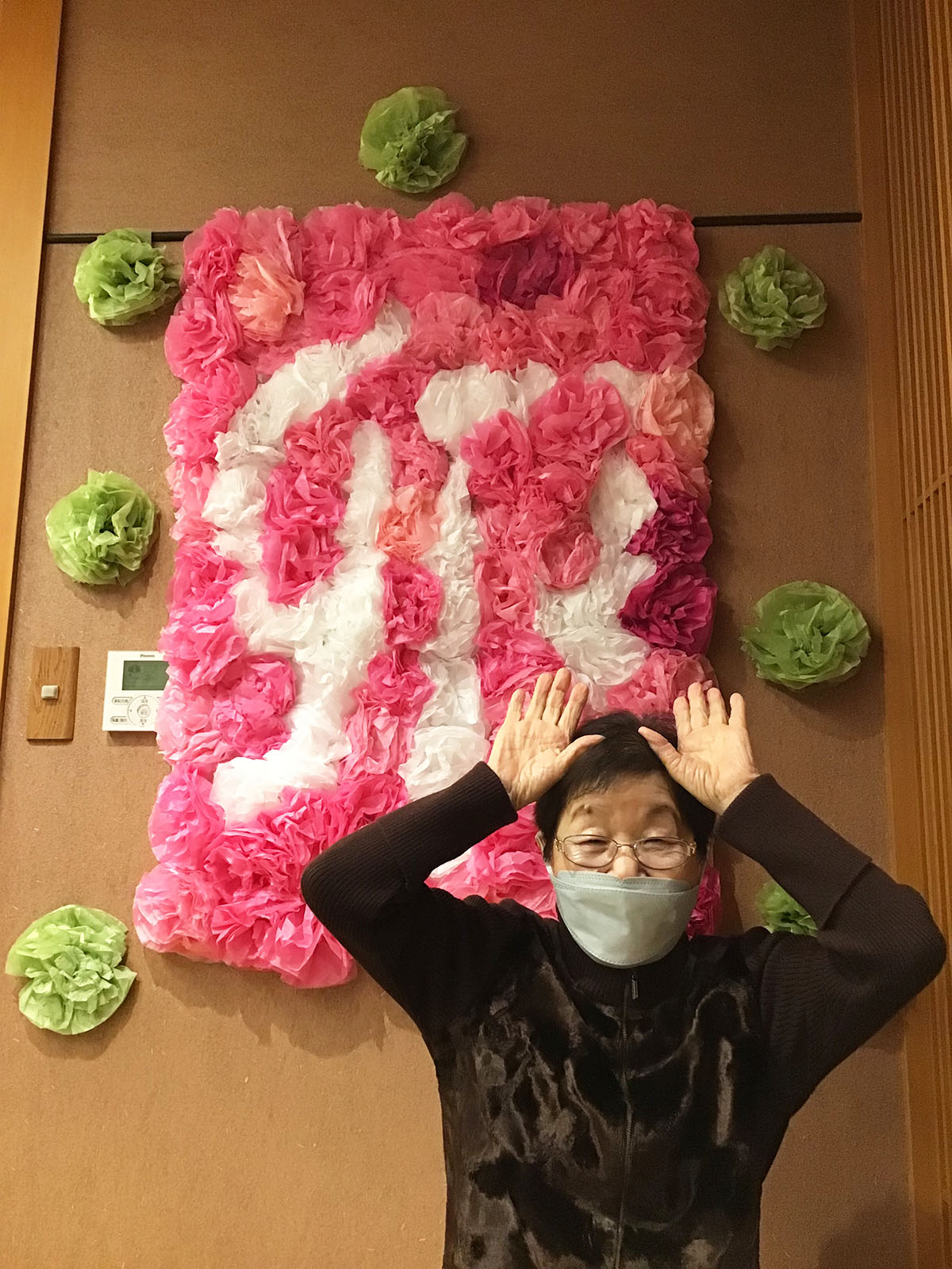 11月から皆さまがお花紙で作った作品の前で記念撮影をしました♪センターの中がとても華やかになりました♪