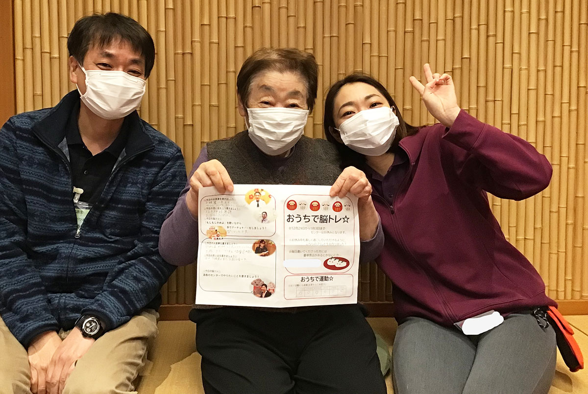 毎日のお食事を書いて頂いたり、年末年始にちなんだ脳トレや軽体操を盛り込みました!