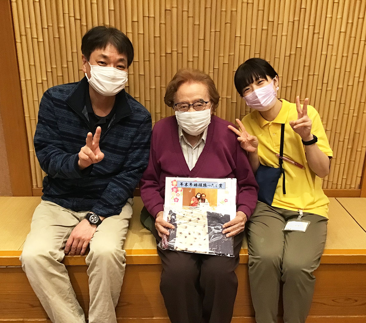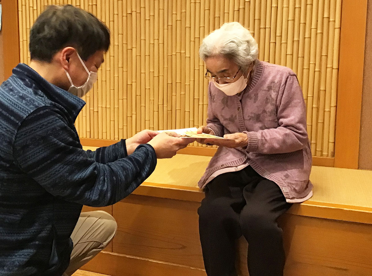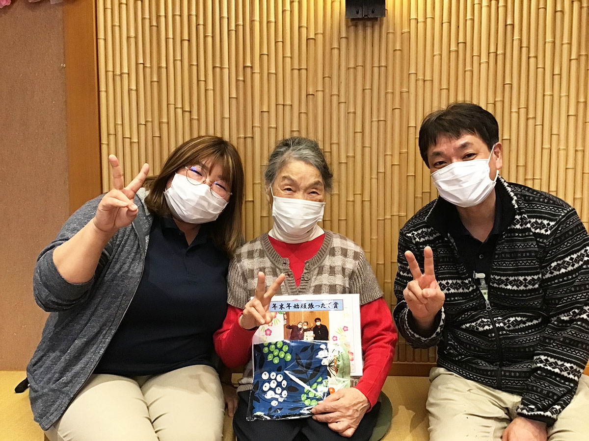 プリントを持ってきてくださった皆様に、賞状と昭和サービスセンターのご利用者が作成したとても素敵な巾着を、今月プレゼントさせていただきました♪