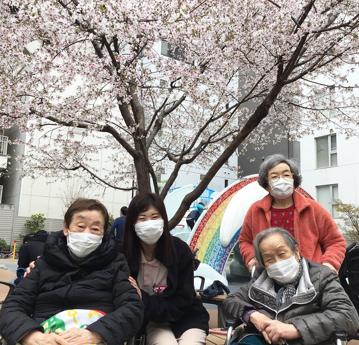 文京湯島高齢者在宅サービスセンターでは、3月21日(火)から、近くの公園にお花見に出かけています☺
