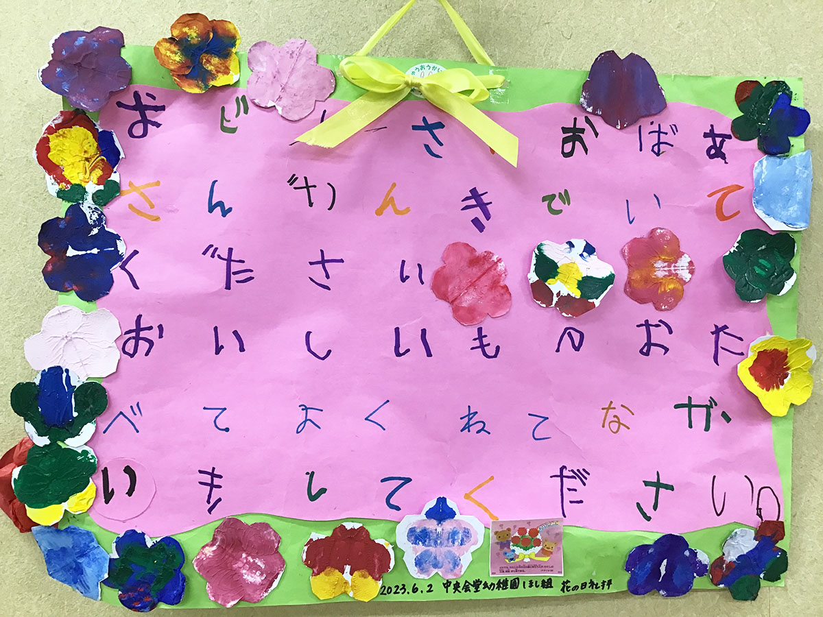 6月2日(金)に中央会堂幼稚園の子供たちが湯島センターに来て、お花のプレゼントと歌や踊りを披露してくれました!