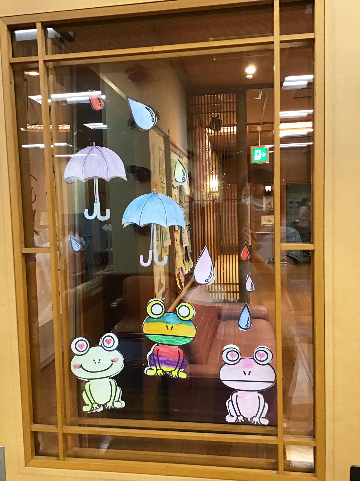 フロア入口の窓ガラスには、ご利用者のみなさまが塗ったかわいいカエルに癒されます🐸