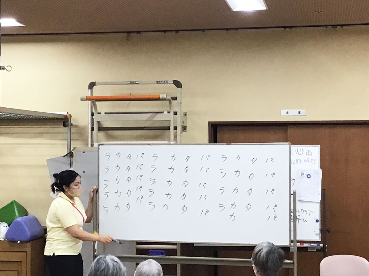 お食事前の口腔体操も♪スタッフの前にはご利用者がたくさんいらっしゃいますが、みなさまあたたかく見守ってくださっています♡