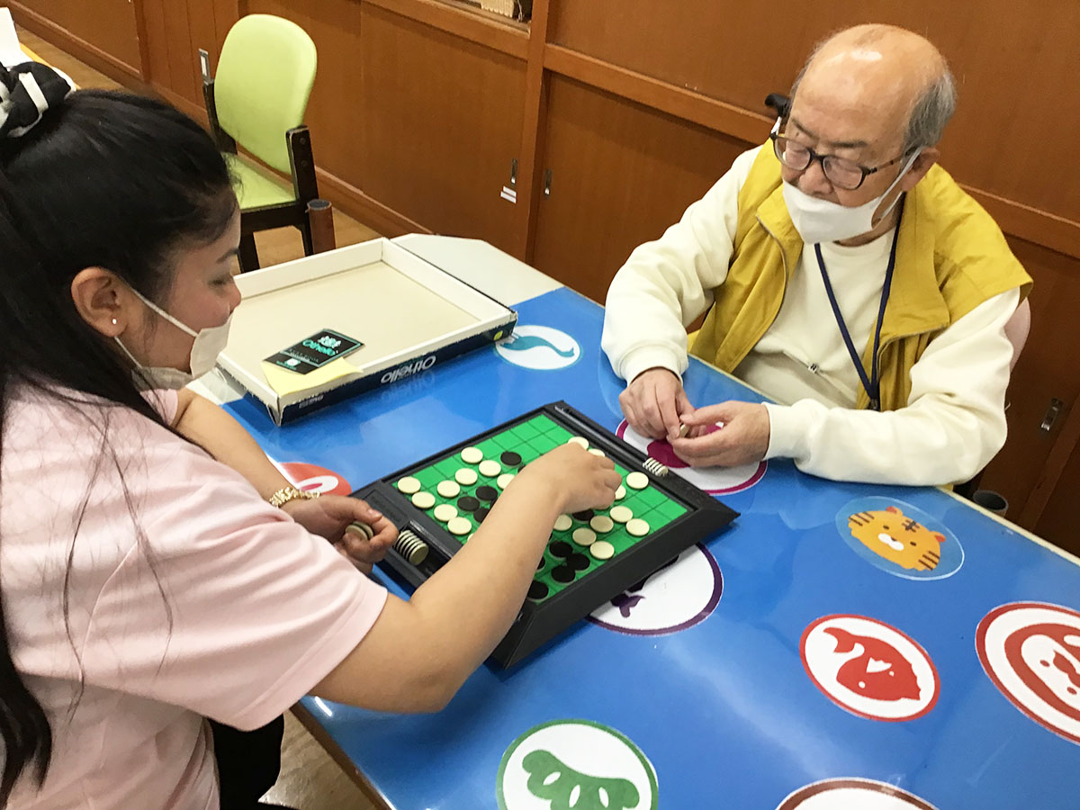 午後の活動プログラムではオセロの対戦のお相手です!