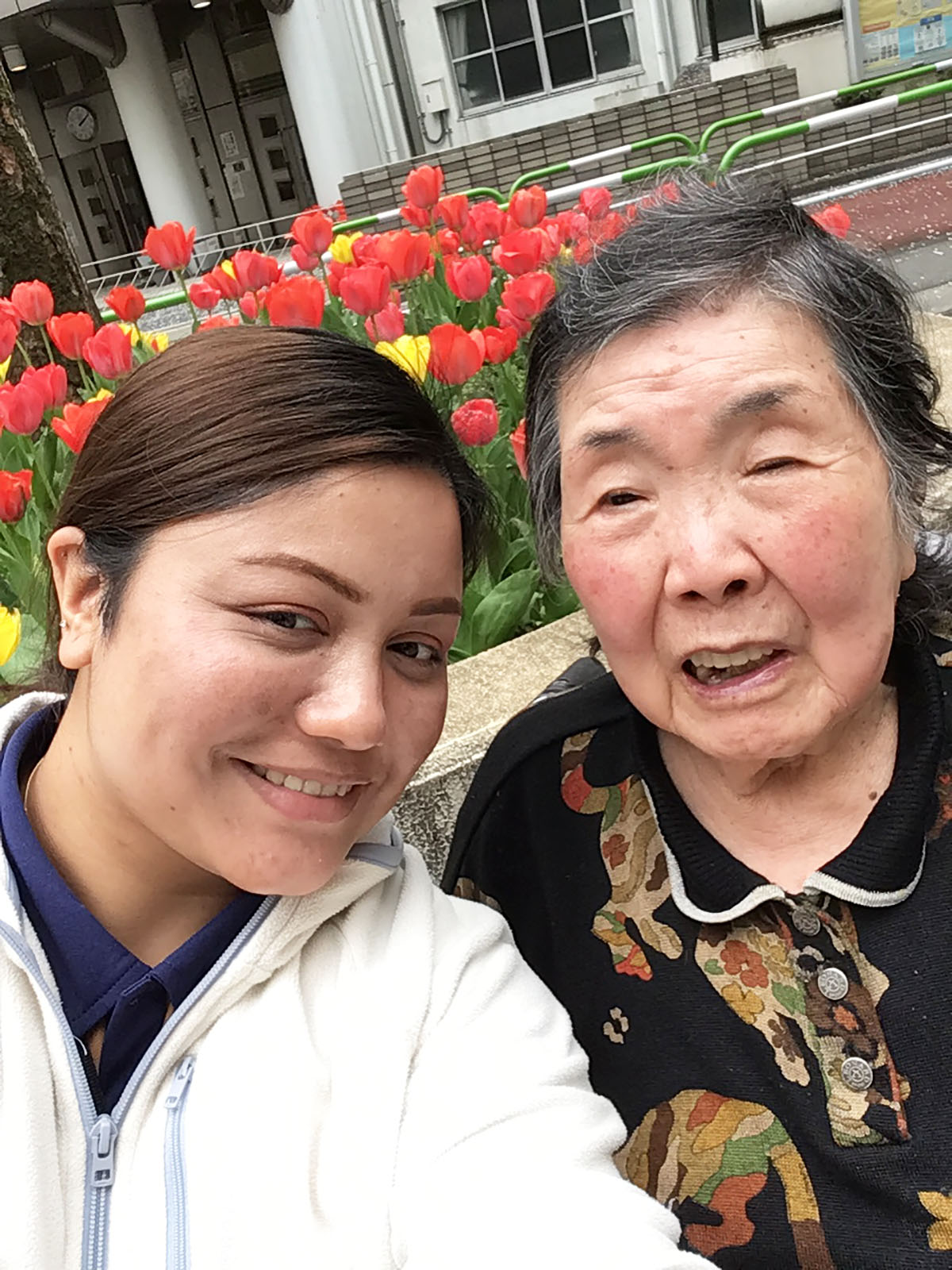 センターの中からも桜並木が見えますが、外に出て目の前で桜やチューリップを見ると心が和みますね♪