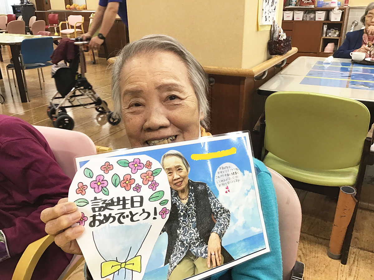 毎月お誕生日会を行っています♪お祝い御膳に誕生日ケーキ♪歌や誕生日カードのプレゼントをご用意しています🎁