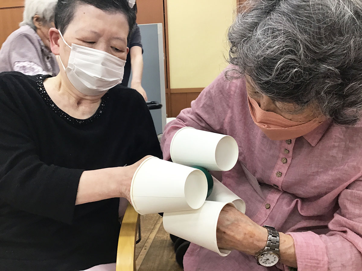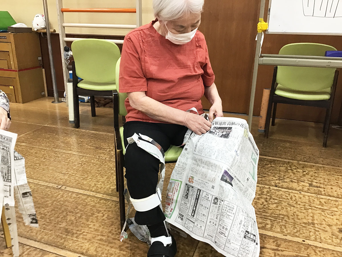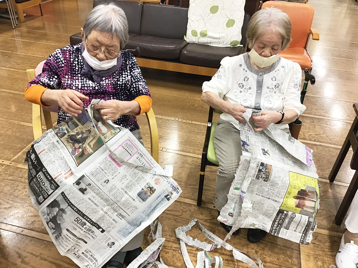 新聞を長くちぎった方が優勝です!あまりの長さに笑顔と拍手で喜ばれました!