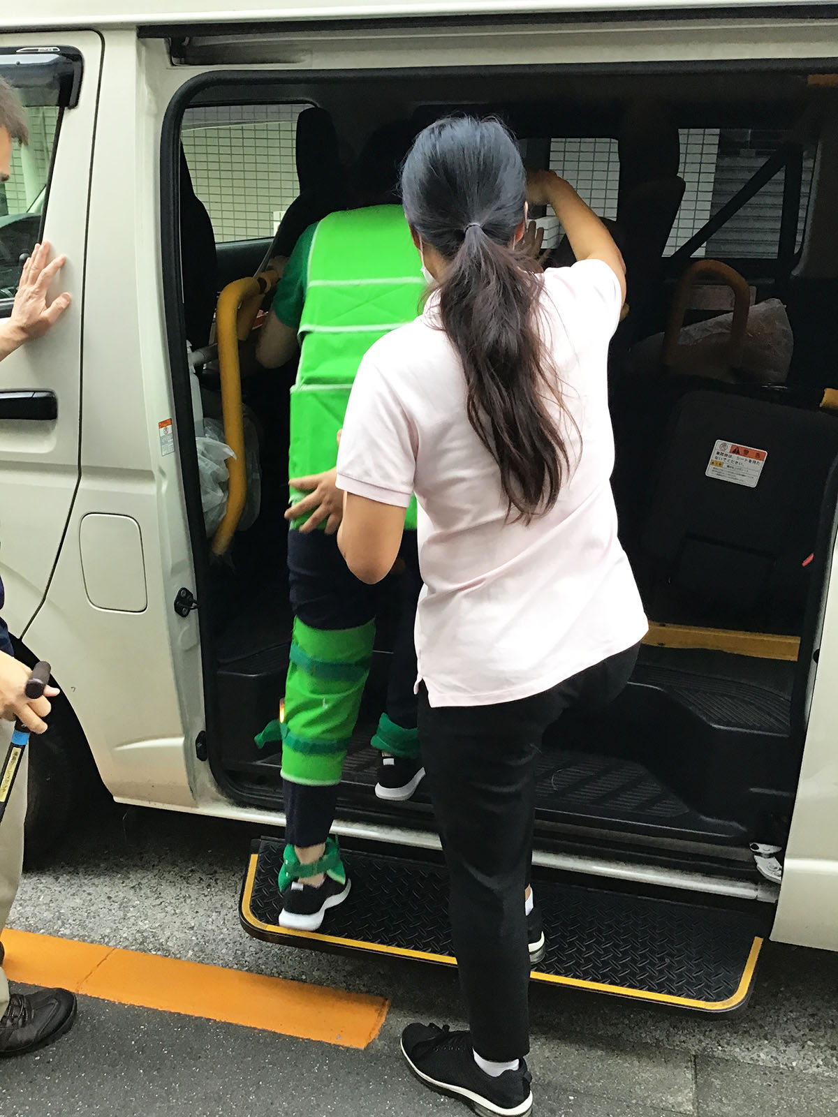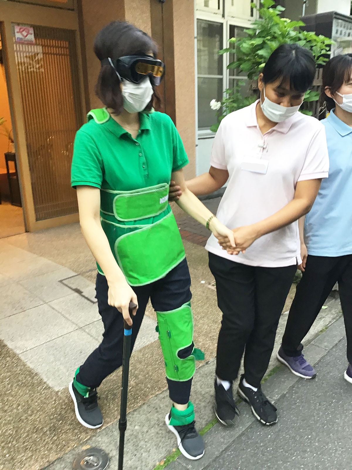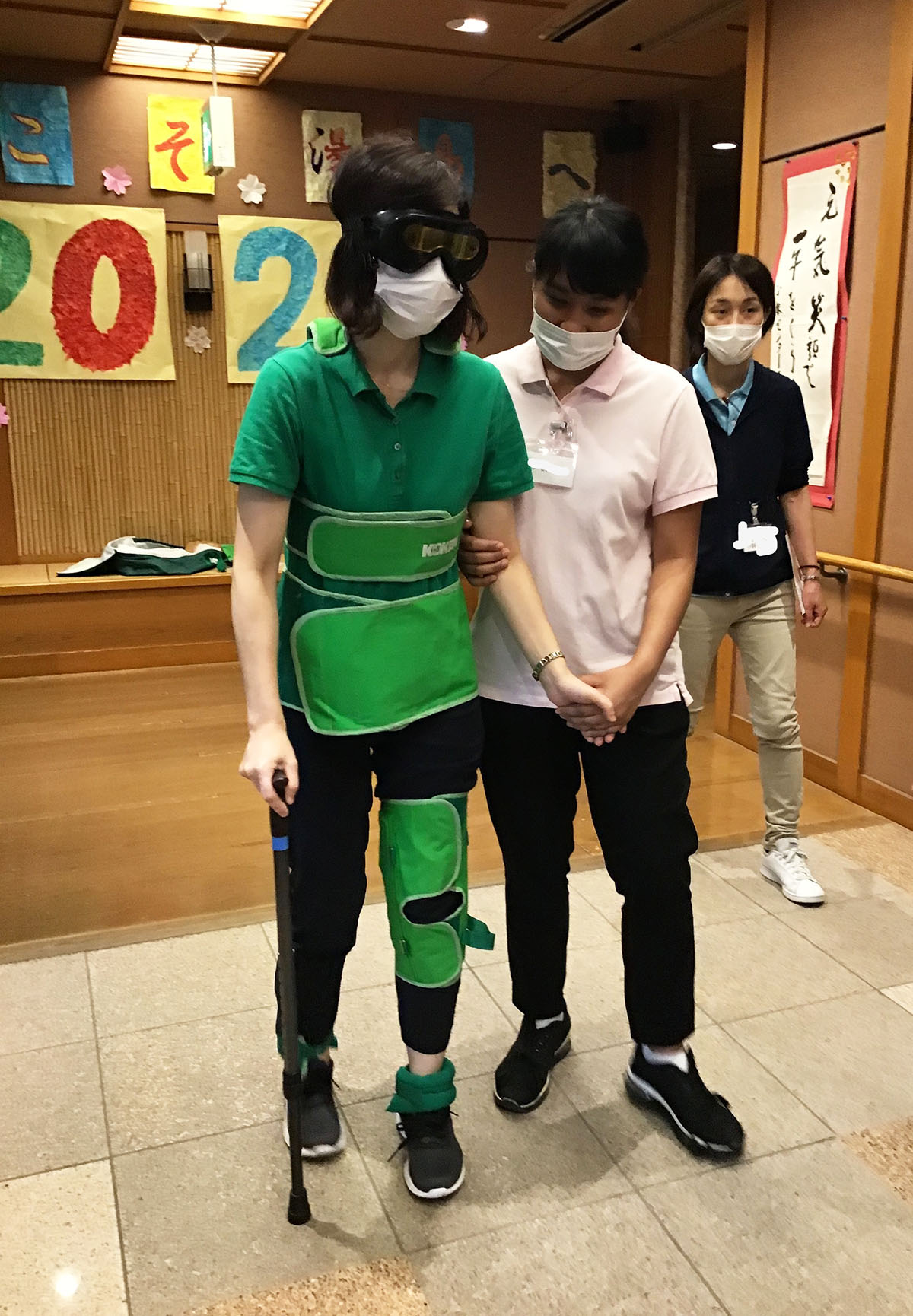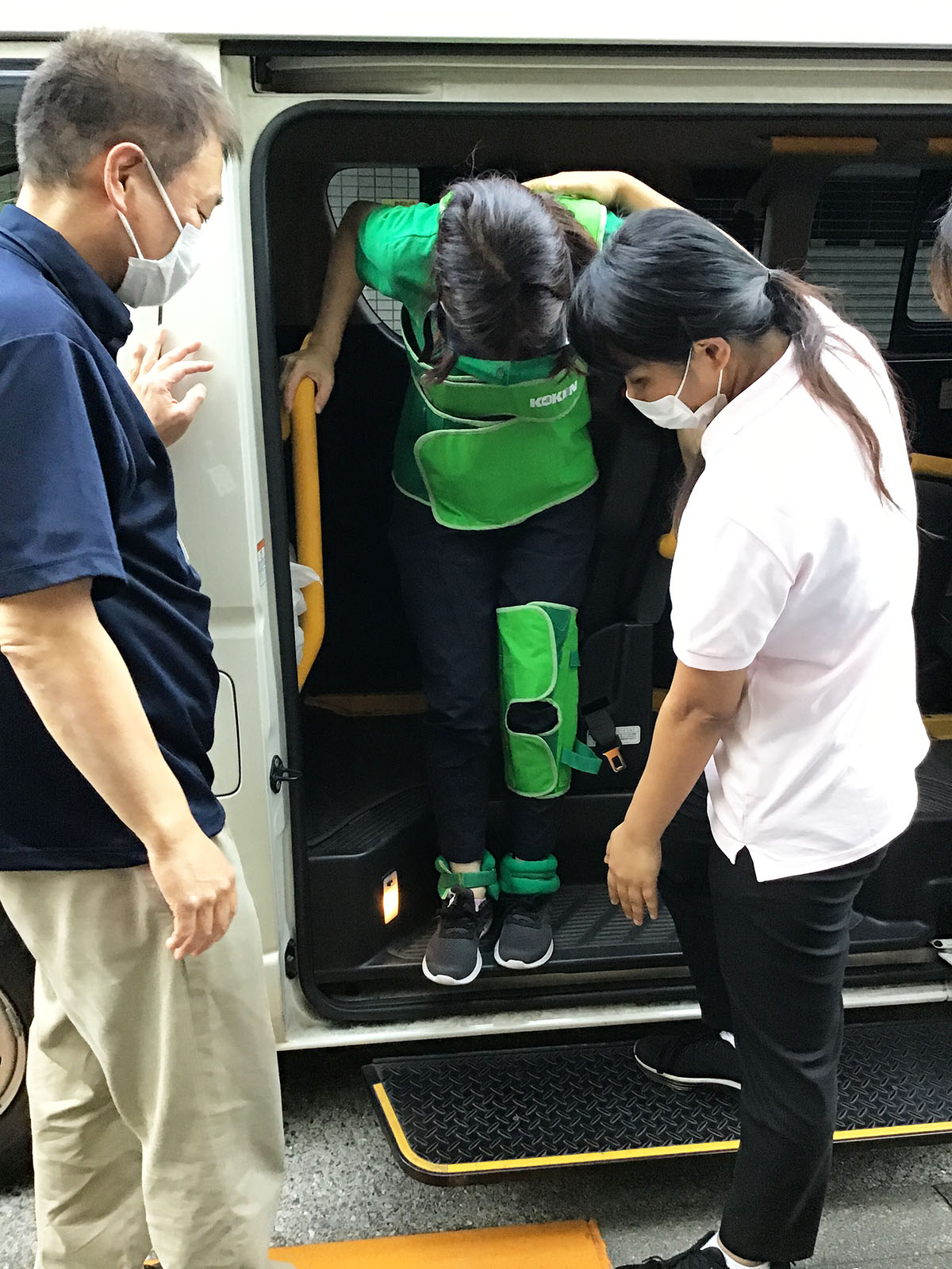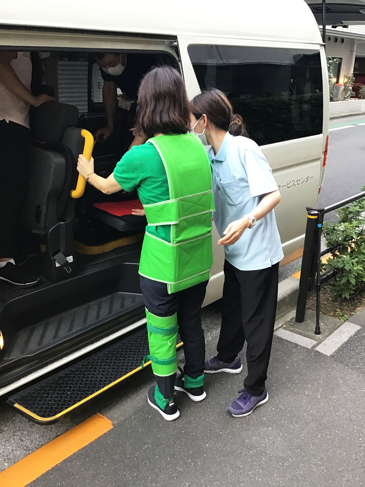 今回は高齢者セットを装着したスタッフを実際に介助を行いました。