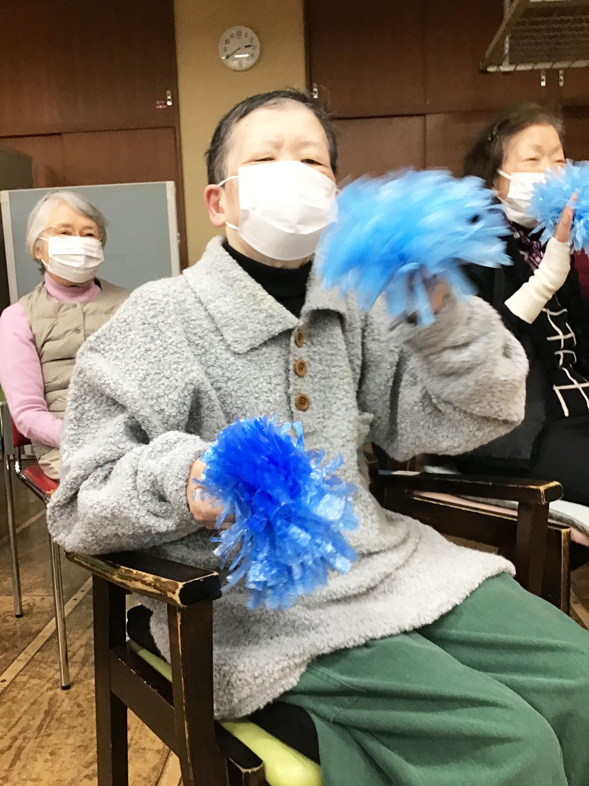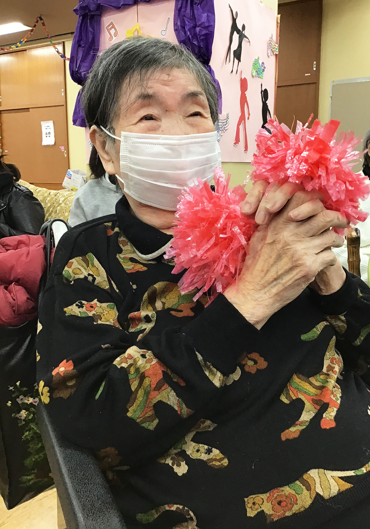 ブギウギダンスはご利用者皆さんで作ったポンポンを持って(^^♪フロアが一気に盛り上がりました♪