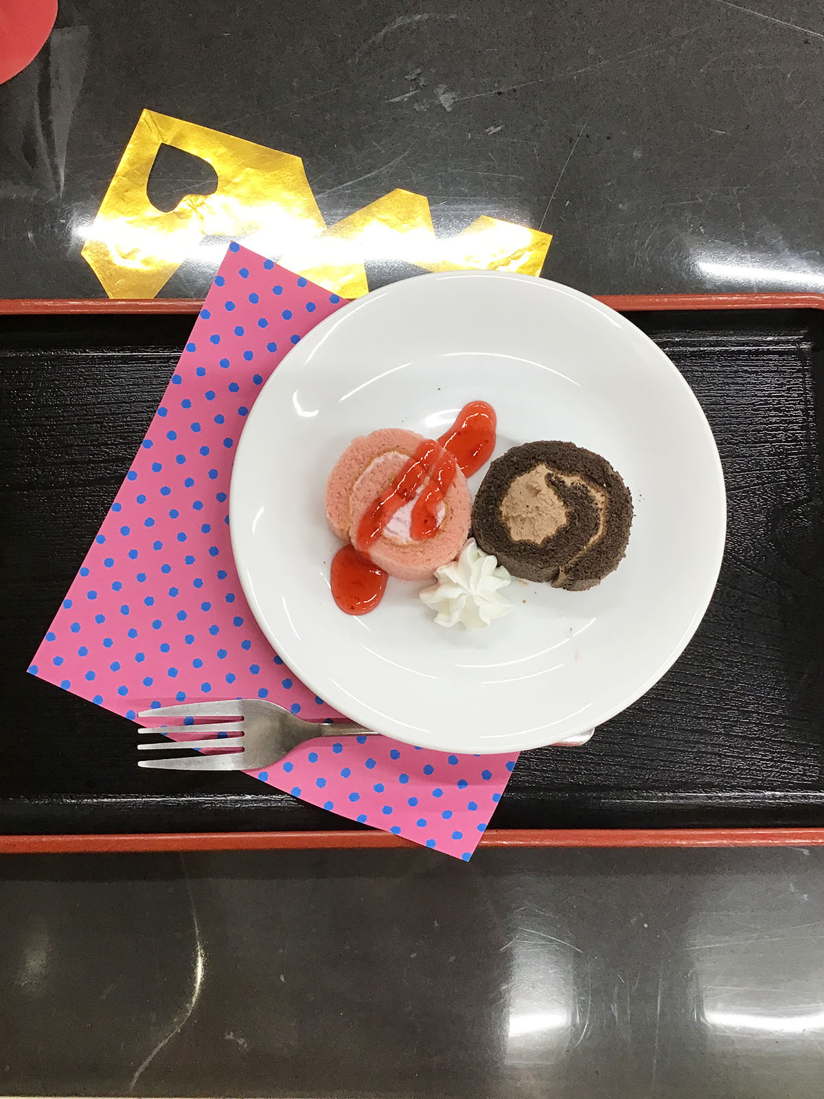 ダンスホールに出るような可愛らしいお食事と今年のランチョンマットはスタッフ全員から感謝の気持ちを込めたメッセージでした♪
